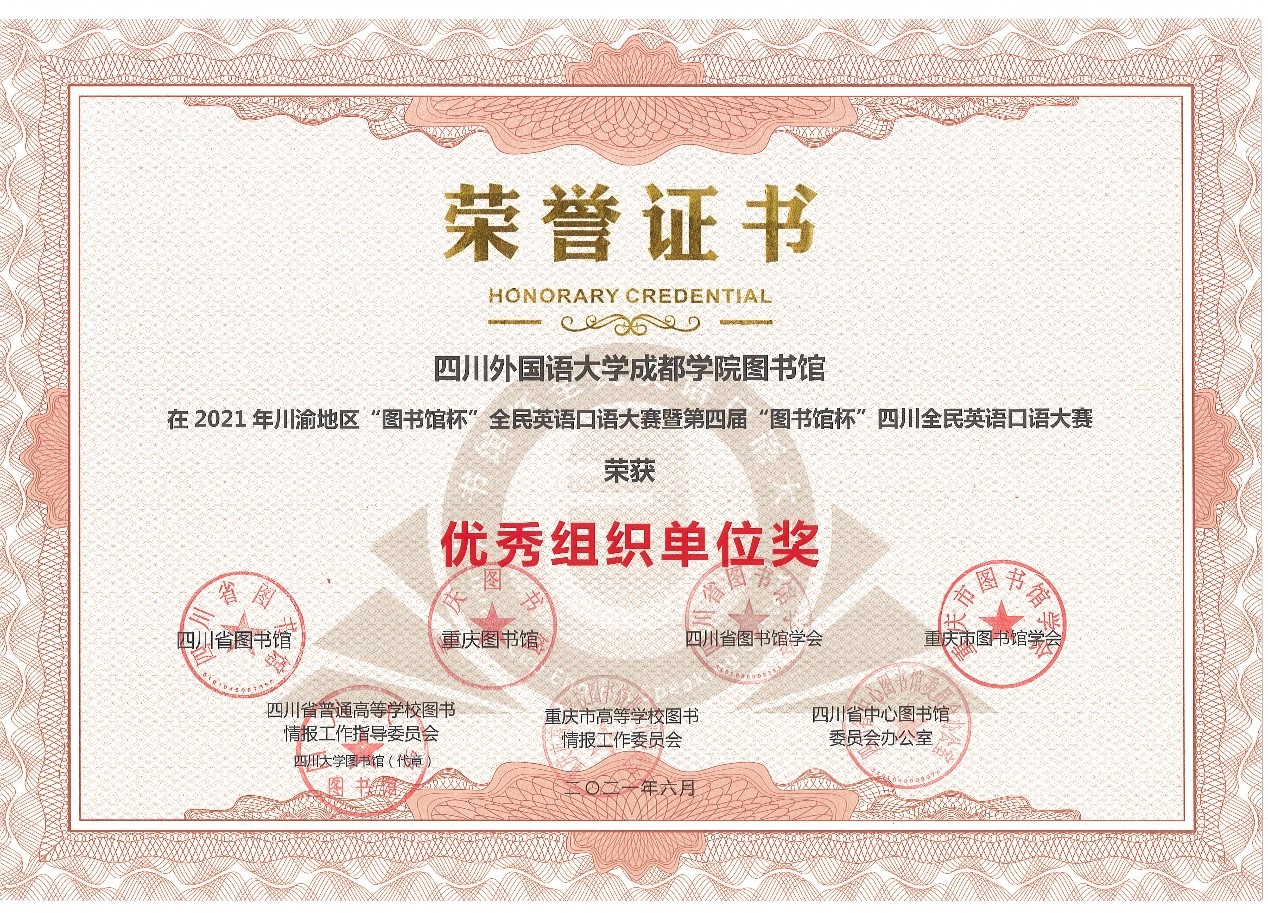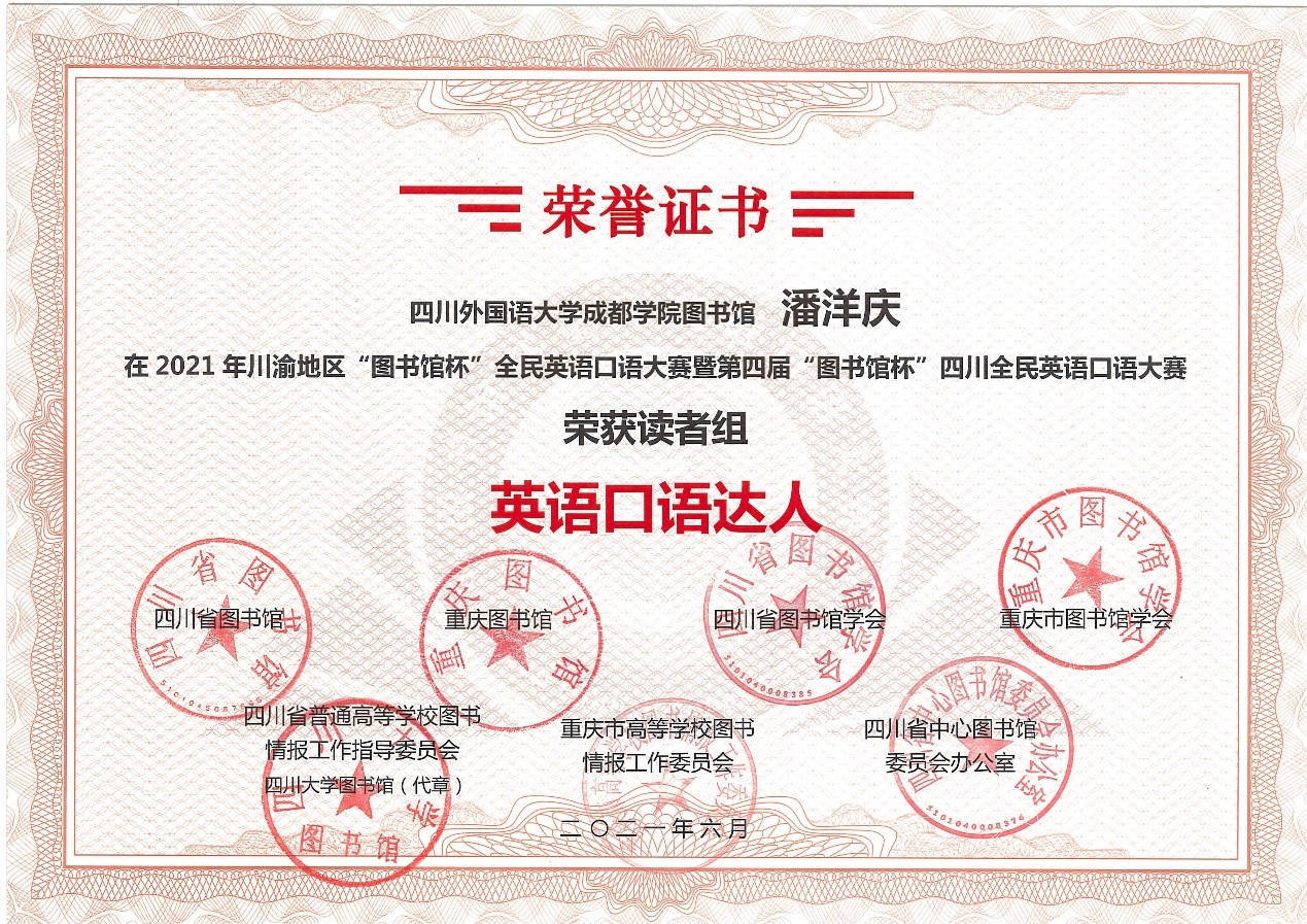 喜讯传来!在这个深秋季节,第四届川渝地区“图书馆杯”全民英语口语大赛获奖的消息终于抵达青城山。
