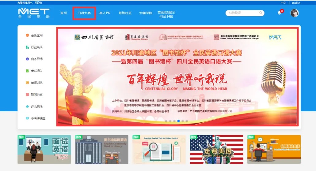 1.登录“MET全面英语” https://lib.52met.com/