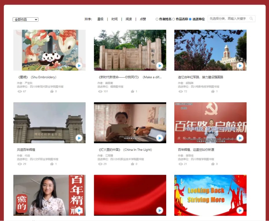 3. 点击“复赛作品”,输入作者名字/作品名称/选送单位,即可查看作品。